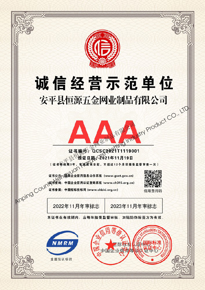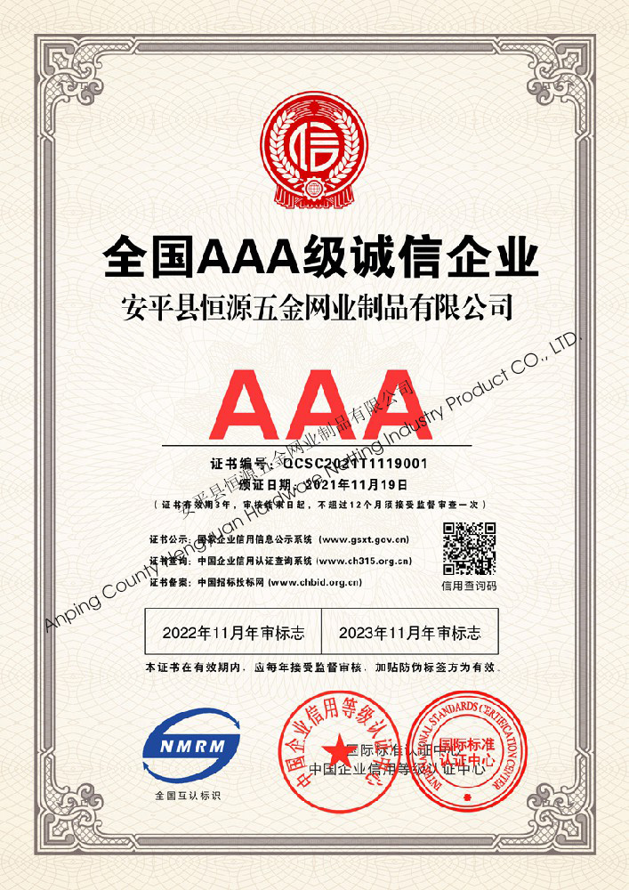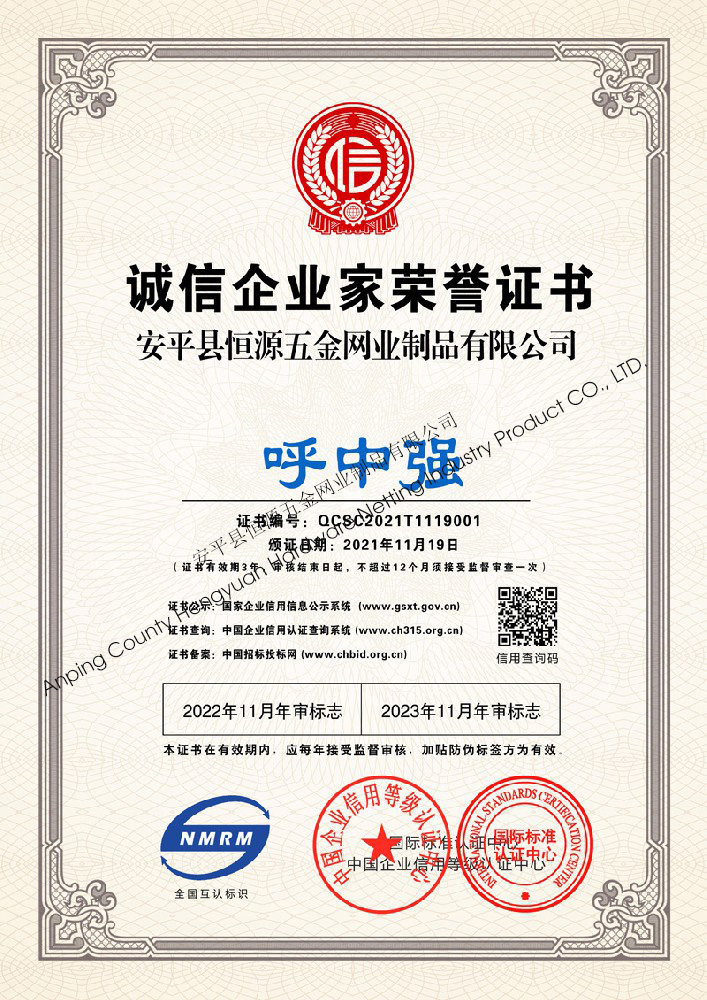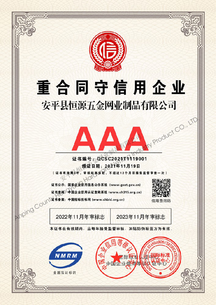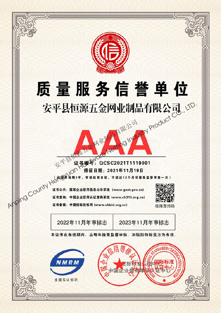 多年來,安平縣恒源五金網(wǎng)業(yè)制品有限公司堅(jiān)持“科技興企、質(zhì)量立業(yè)”的經(jīng)營理念和“誠心為本、客戶至上”的合作宗旨,優(yōu)化生產(chǎn)工藝,打造優(yōu)質(zhì)產(chǎn)品,提供完善的服務(wù),受到國內(nèi)外客戶的一致好評(píng),產(chǎn)品行銷全國各地,并出口美國、德國、韓國、日本、臺(tái)灣等國家和地區(qū)。